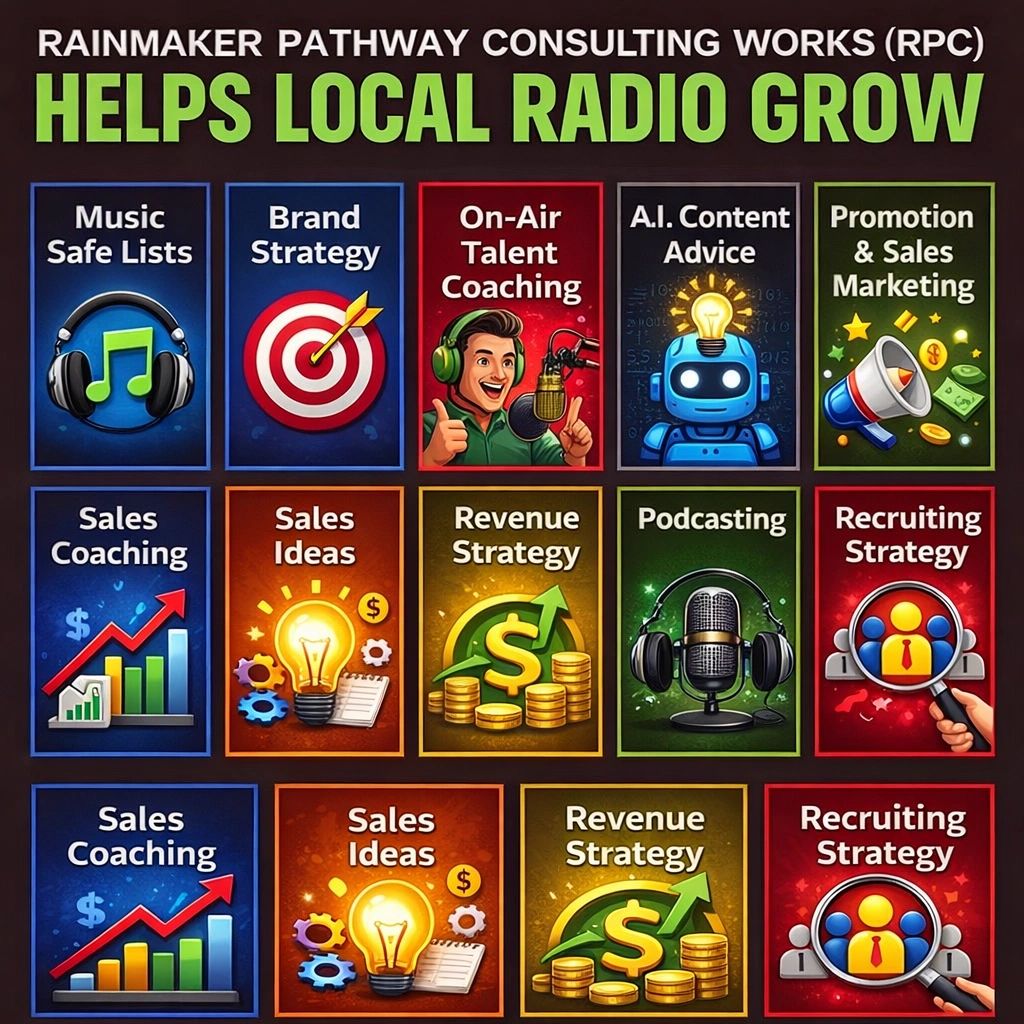 Is it a sales problem? Is programming a problem? Find out. “Rainmaker Pathway helps radio clusters and individual stations grow audience and revenue by aligning programming strategy with sales execution—something format and sales consultants rarely do together.”